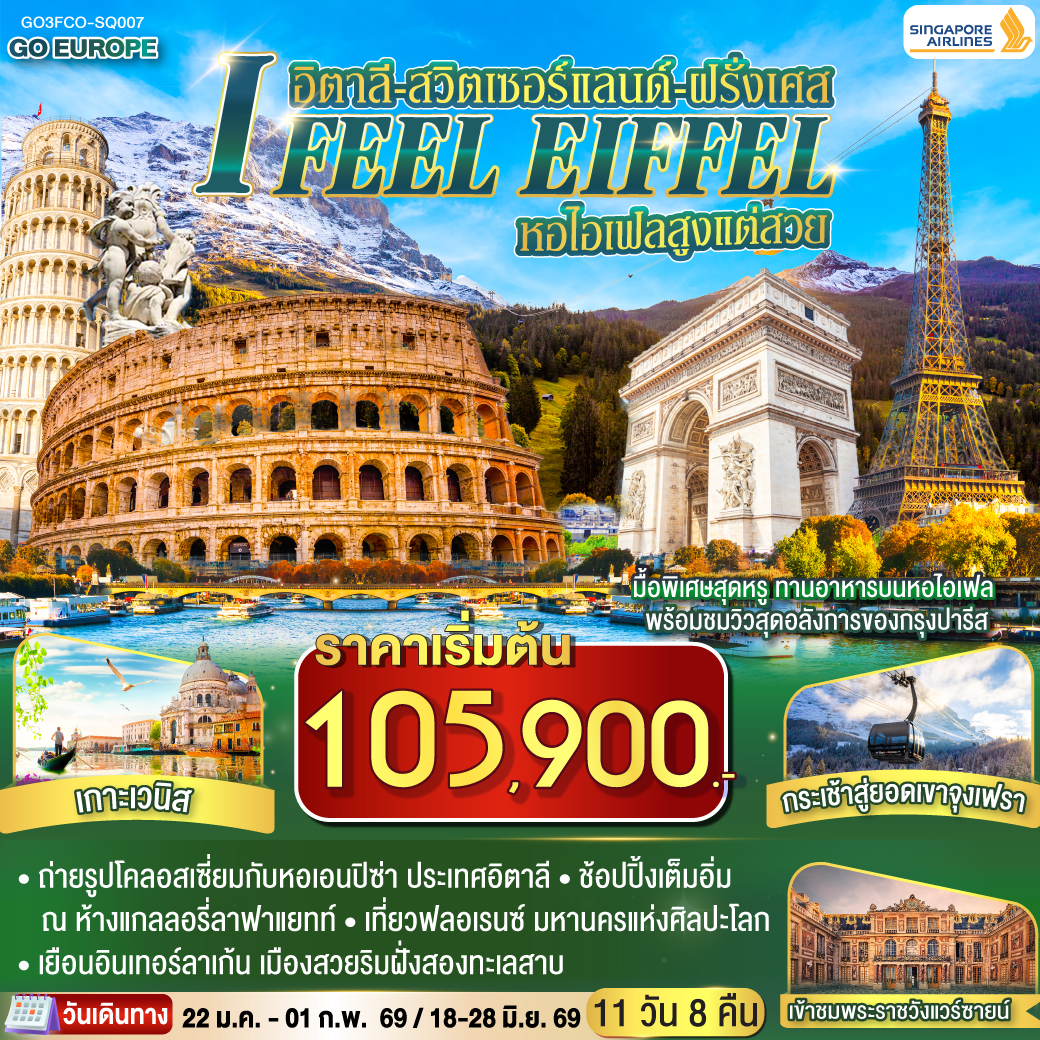 I FEEL EIFFEL หอไอเฟลสูงแต่สวย อิตาลี-สวิตเซอร์แลนด์-ฝรั่งเศส 11 วัน 8 คืน โดย Singapore Airlines (SQ) |