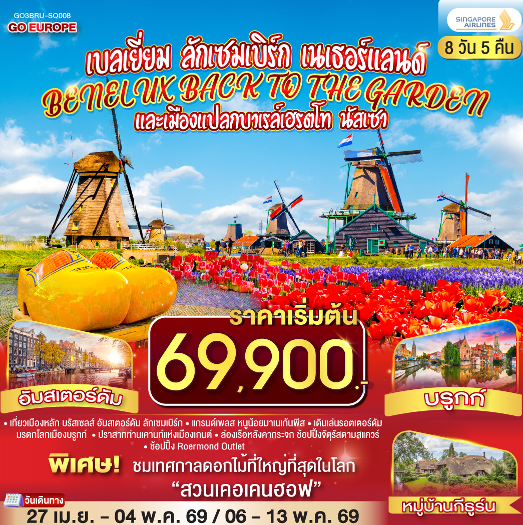 BENELUX BACK TO THE GARDEN และเมืองแปลกบาเรล์เฮรตโท นัสเซา เบลเยี่ยม ลักเซมเบิร์ก เนเธอร์แลนด์ 8 วัน 5 คืน โดยสายการบิน Singapore (SQ) |