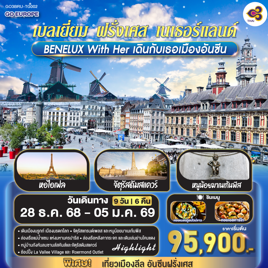 เบลเยี่ยม ฝรั่งเศส เนเธอร์แลนด์ BENELUX with her เดินกับเธอเมืองอันซีน 9 วัน 6 คืน โดยสายการบินไทย (TG) |